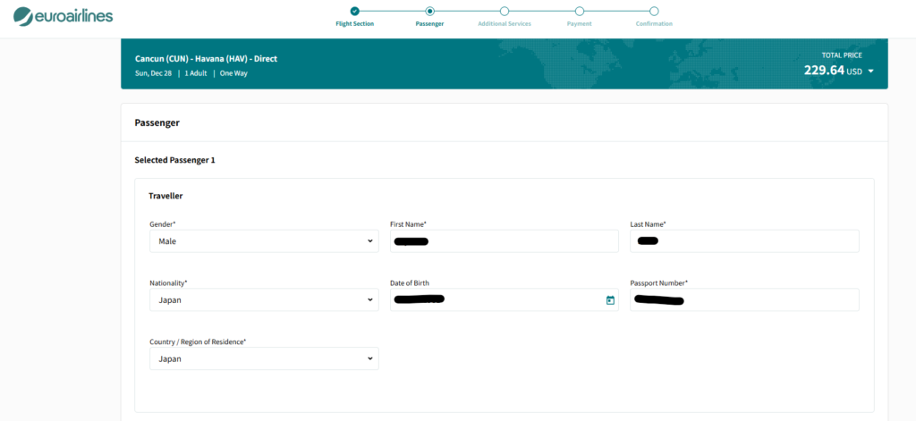 カンクンーハバナ間のEuroairlines(ユーロエアラインズ)での航空券購入方法でした。