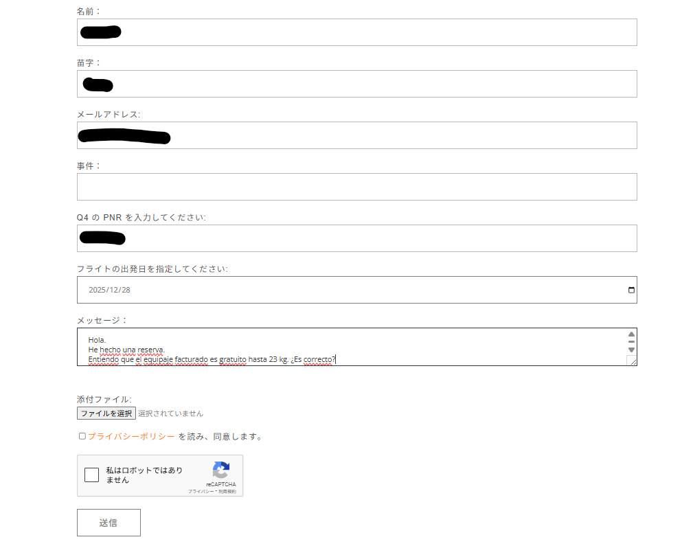 のちのちhttps://mivuelo.online/ にアクセスし、預入荷物25kgを別途追加いたしました。