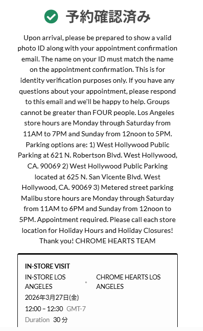 Chrome Hearts LOS ANGELS & MALIBU の予約方法は?
