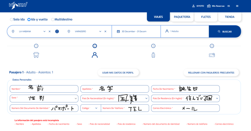 キューバのバス、「VIAZUL」の予約方法でした。