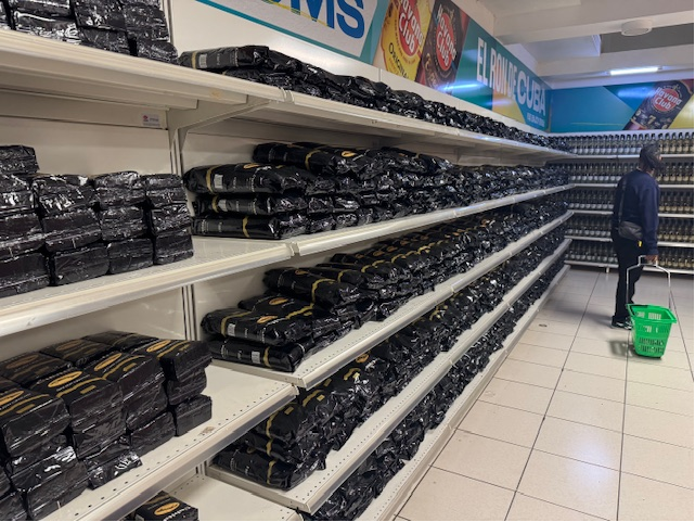 キューバのスーパーマーケットは、日本のものとは大きく異なり、商品の品揃えが限られていることが多いです。棚に同じ商品がずらっと並んでいたり、空っぽのスペースがあったりする光景が一般的です。