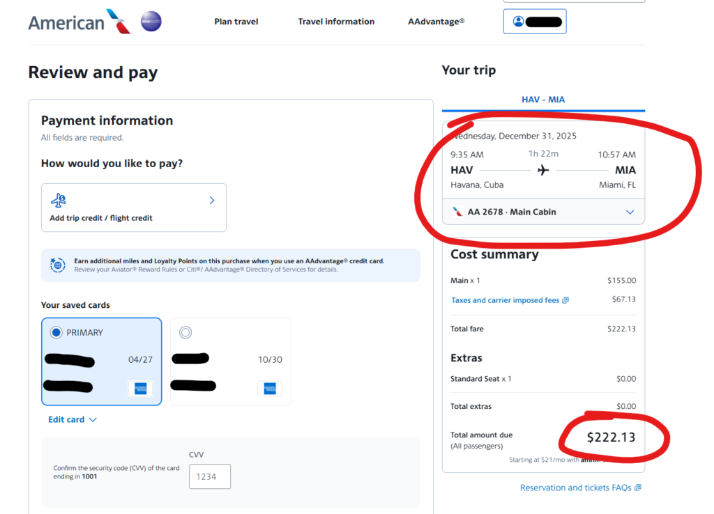 今回は、アメリカン航空でキューバの首都ハバナーマイアミのチケットを購入していきます。