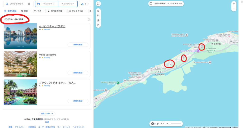 キューバのホテル予約方法でした。大手旅行サイト経由では、キューバのホテルは予約できませんので、直接サイトへアクセスして予約する必要があります。どんなホテルがあるのかも分からないので、そのようなときにGoogleマップ上でホテルを検索すると、ヒットします。