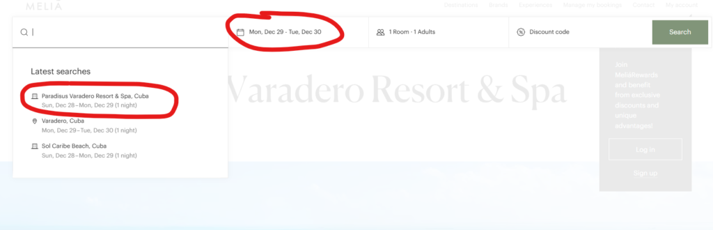 直接サイトへアクセスし、バラデロのホテル予約してみた