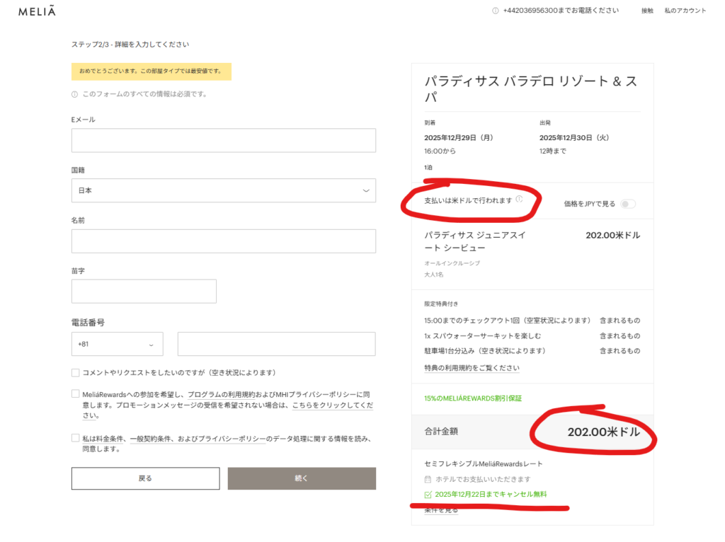 今回は、直接ホテルへアクセスし、予約をしましたので、予約のやり方を見ていきたいと思います。