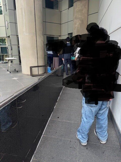 面接をやっている後ろ側では、次の順番を待っている人の並びがあるので、面接の会話内容はつつぬけです。