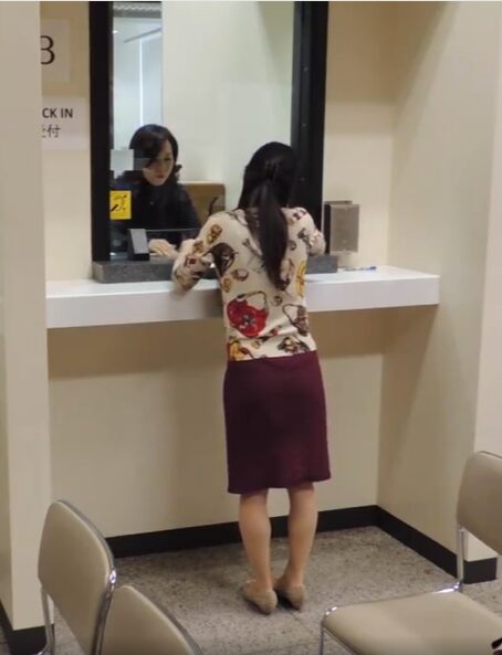 面接は窓越しに行われます。面接官は一人です。今回は2つの窓口で対応しており、2人とも女性でした。